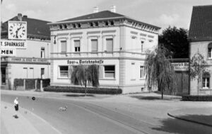 Seit 1969 gibt es die Volksbank an der Ecke Bahnhofstraße – Klosterstraße, hervorgegangen aus der Spar- und Darlehenskasse im Gebäude gegenüber. Später gehörte ihr auch das Haus Bahnhofstraße 12,