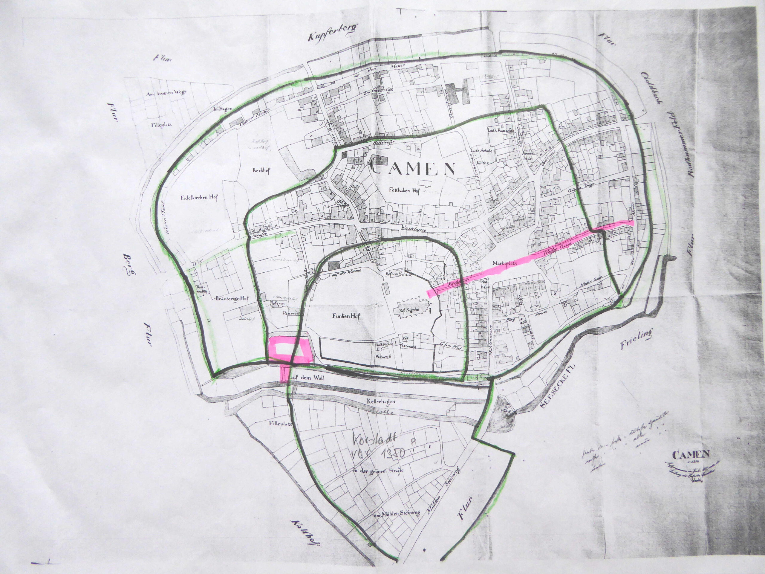 Mittelalterliche Städte waren in der Regel von einer Stadtmauer umgeben, deren Durchgänge durch Stadttore verschlossen werden konnten. Die großen Straßen führten durch sie hindurch und wurden von den Kaufleuten benutzt, die die Märkte beschickten und dazu von Stadt zu Stadt zogen. Selbst die Fernverbindungsstraßen waren in den Städten meistens bis zum Beginn des 18. Jh. nicht gepflastert und schon beim geringsten Regen schlammig und kaum passierbar. Immerhin wurde Kamens Mühlenstraße (heute Bahnhofstraße vom Markt bis zur Maibrücke, wo die Mühle stand) bereits 1797/98 als erste Straße in Kamen gepflastert, viel später folgte die Oststraße, erst 1890 wurden die Rott–, die Kamp–, die Weeren–, die Nord– und die Weststraße gepflastert. Auch das ist indirekt ein Beleg für die Bedeutung des Zugangs zum Hellweg, der alten Heer- und Handelsstraße, der via regis.
