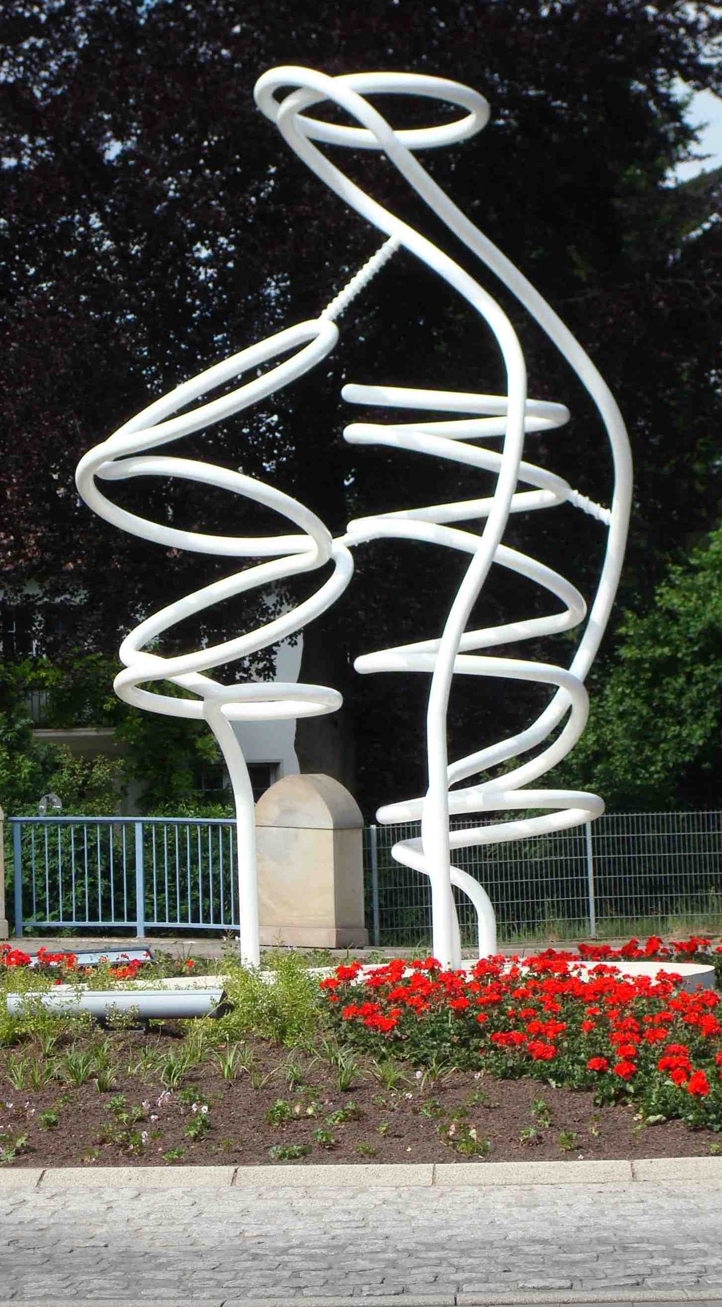 Manfred Jockheck, „Drei Säulen“; Kreisel an der Partnerschaftsbrücke; Stahlrohr mit Spezialfarbe gestrichen, 2009;